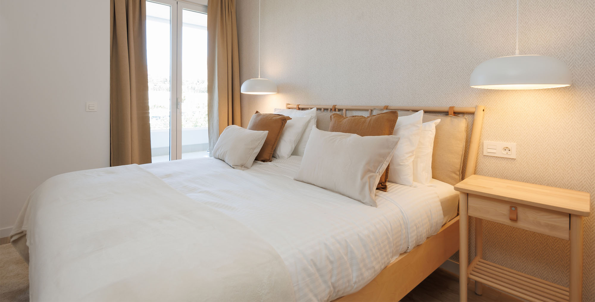 Our holiday apartments in Nueva Andalucía, Marbella, offer a perfect stay in a prime location, very close to Puerto Banús. We have five two-bedroom apartments and one three-bedroom apartment, all equipped with every comfort needed for a pleasant stay.